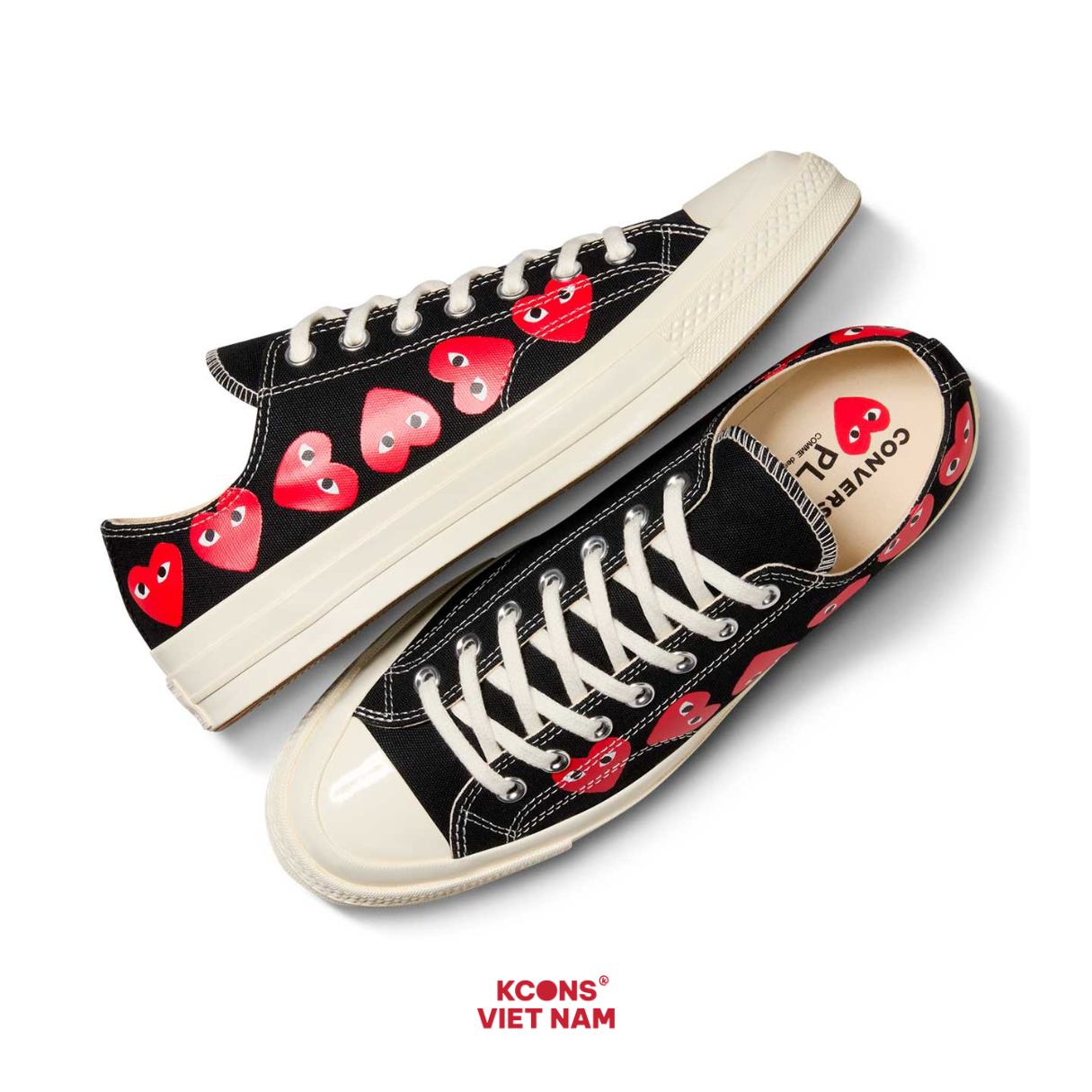 • Sự kết hợp giữa thiết kế cổ điển của Converse và phong cách nghệ thuật độc đáo của Comme des Garçons PLAY.