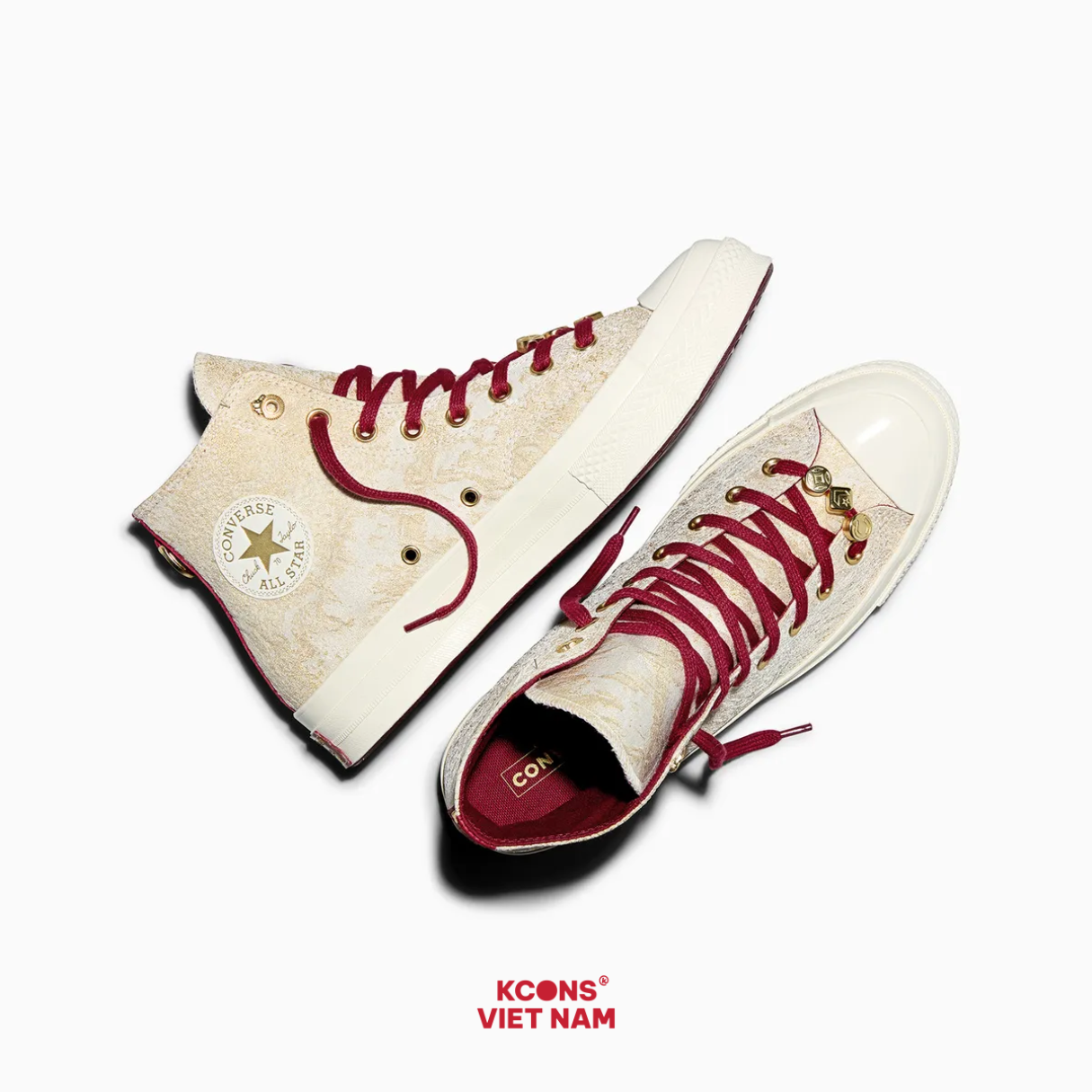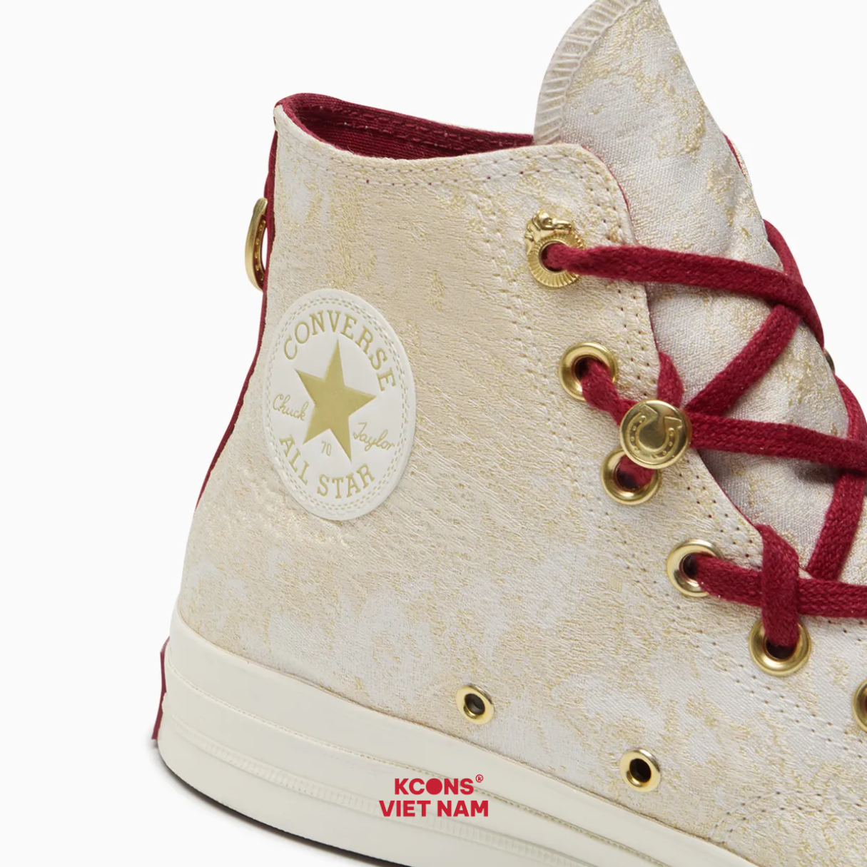 Converse Chuck 70 High Lunar New Year 2026 YEAR OF THE HORSE là phiên bản đặc biệt chào mừng Tết Nguyên Đán. Màu trắng – bạc kim lấy cảm hứng từ yếu tố may mắn và phúc lộc. Đây là thiết kế limited edition, hội tụ tinh thần retro nhưng vẫn hiện đại, dễ phối đồ.